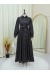 Belden Bağlamalı Önü Düğmeli Boncuklu Kot Elbise -Antrasit