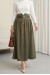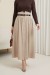 Beli Lastikli Ve Kemerli Önü Düğmeli Yüksek Bel Modal Etek -Taş