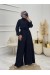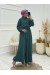 Dik Yaka Kemerli Güllü Tulum -Siyah