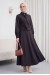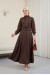 Gizli Düğmeli Fular Detaylı Etekli Diagonal Takım   -Kahve