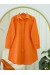 Gizli Düğmeli Oval Kesim Uzun Gömlek -Turuncu