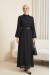Hakim Yaka Balon Kol Kemerli Astarlı Dantel Elbise -Siyah