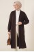 Kolu Düğme Detaylı Fitilli Uzun Triko Hırka -Kahve
