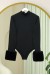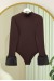 Kolu Kürklü Yarım Boğazlı Çıtçıtlı Zıbın Bluz -Kahve