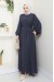 Kolu Lastikli Beli Bağlamalı Fermuarlı Ferace -Siyah