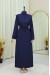Omuzu Vatkalı Bağcıklı Bürümcük Elbise -İndigo