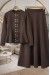 Önü Çift Çıtçıtlı Beli Volanlı Etekli Scuba Takım -Vizon