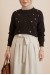Serpme Çiçek Nakışlı Düğmeli Oversize Triko Hırka -Krem