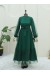 Serpme Pul Detaylı Kolu Bağcıklı Tül Elbise -Zümrüt