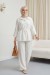 Tünel Bağcıklı Beli Lastikli Pantolonlu Pamuklu Krinkıl Takım -Ekru