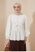 V Yaka Dantel Detaylı Balon Kol Viskon Bluz -Beyaz