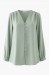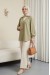 V Yaka Düğmeli Arkası Uzun Gömlek -Zeytin