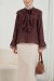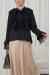 Yakası Bağcıklı Fırfırlı Dantel Detaylı Arkası Uzun Cupra Gömlek -Siyah