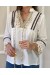 Yakası Bağcıklı Kolu Dantelli Püsküllü Bluz -Beyaz