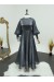 Yanları Bağlamalı Balon Kol Jakarlı Abiye -Antrasit