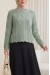 Yaprak Desenli Ajurlu Triko Hırka -Mint